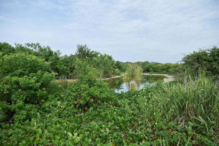 Alberto Kalach diseñó el desarrollo de un jardín botánico de 27 hectáreas cuyo objetivo es preservar y catalogar las especies de la zona como la parota, macuil, majahua y flor de lantana, así como fomentar una educación ambiental.