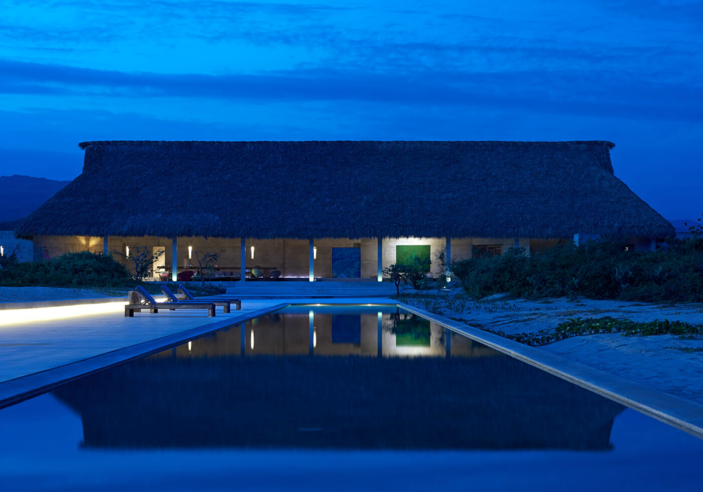 “The construction looks directly at the Pacific Ocean, sharing 550 meters of coastline with only the impressive beach. I have created a concrete wall 312 meters long by 3.6 meters high with that generous expanse of land. This wall creates a horizontal separation between public programs on the north and private sections on the south side. The rich red and orange sunset reflects off the concrete surface. This is a very unique project, where I used various unusual materials, allowing me to create architecture and spaces that cannot be created anywhere else.“