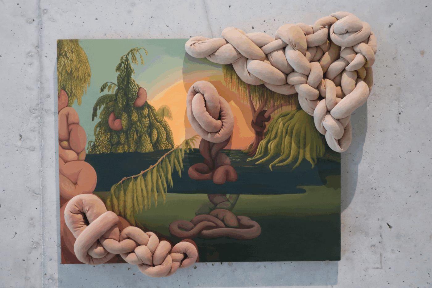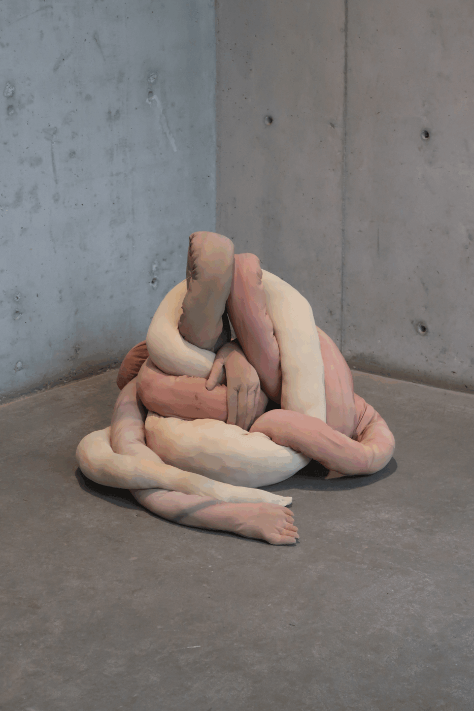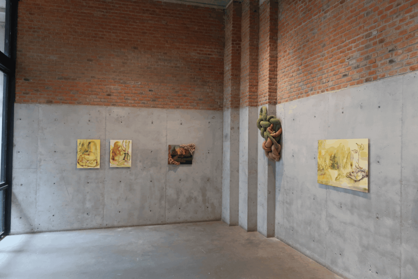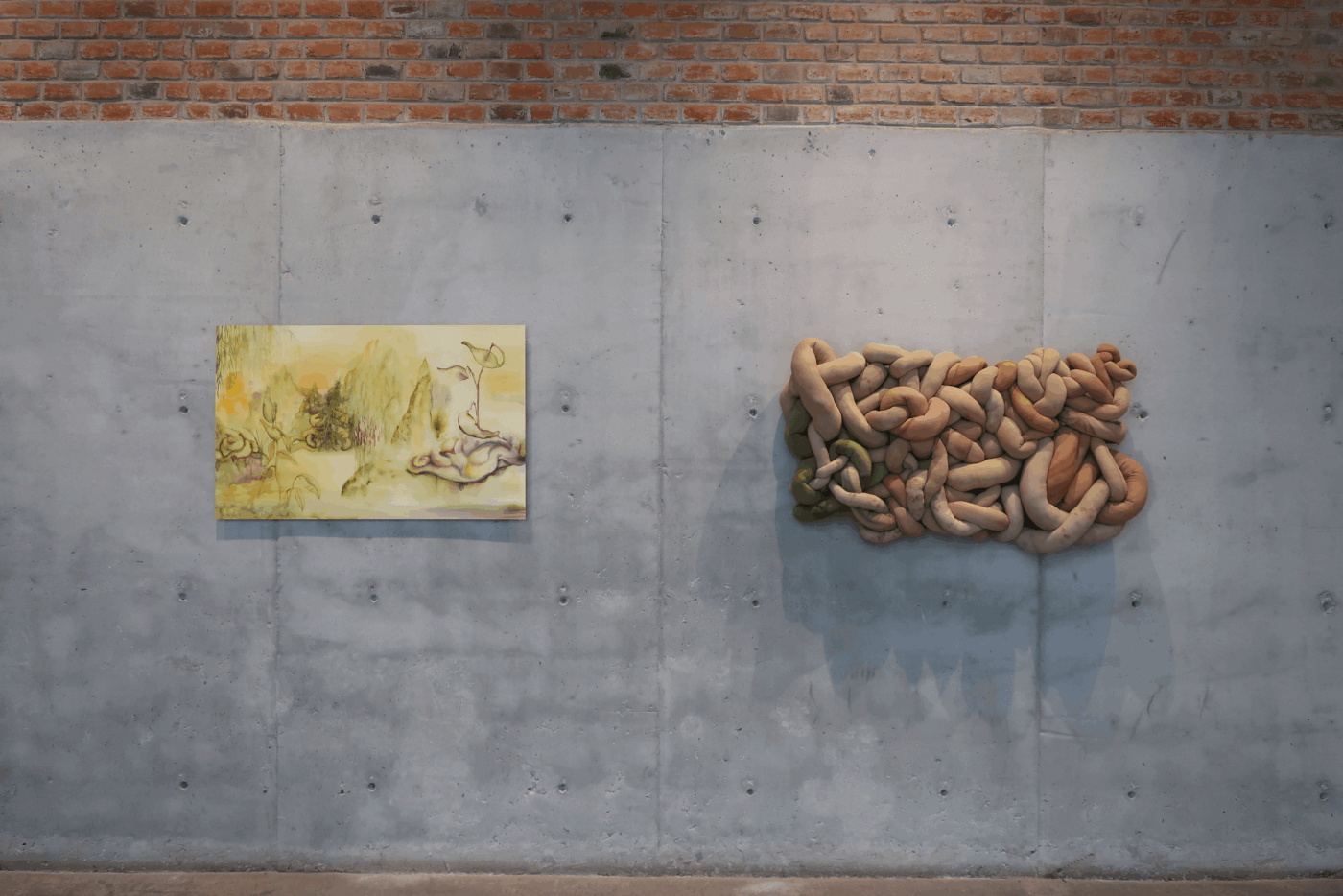 The practice of Lauren Pirie (Canada, 1983) critically reflects on these human tensions between our connection to the earth and the power structures that seek to separate us from it through the extractivist practices inherent to capitalism. Through a network of sinuous, organic forms—present in her drawings, paintings, and sculptures—the artist proposes the generation of interdependent relationships between species. The works gathered in this exhibition, through their biomorphic shapes, seem to emerge from pictorial surfaces to suggest hybrid anatomies or vegetal networks, prompting reflection on the interconnectedness of roots or mycelia beneath the earth as a form of resistance to capitalism’s voracity.