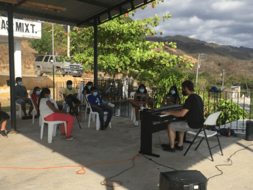 Due to the restrictions imposed by the COVID 19 pandemic in terms of social interaction, Elijah’s project consisted of placing himself somewhere in the communities to improvise his music. Thus, the session was activated when the artist began to play the piano on public roads, or in strategic spaces such as markets, squares or moderately busy streets. He offered ten concerts that allowed the public to have free and casual access to the artist’s creations.