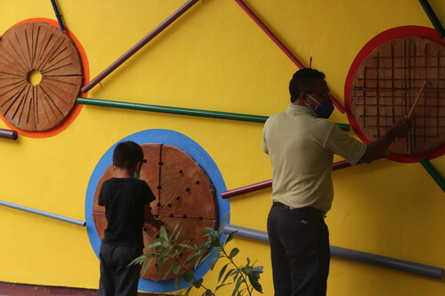 A “sound mural” that combines a pictorial intervention with elements of clay and metal that at the same time works as a musical instrument when activated was developed.
