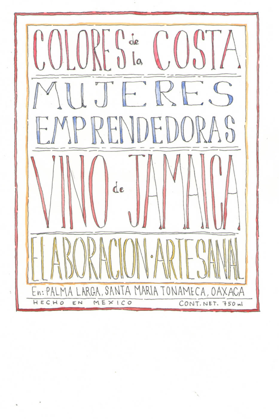 The project consisted of the elaboration of labels for edible products made by the Association. “Colores de la Costa.” In this, graphic design is proposed as a social practice, as a drawing, and as activism. It was carried out to support the inciting feminist entrepreneur in the region around Puerto Escondido, Oaxaca