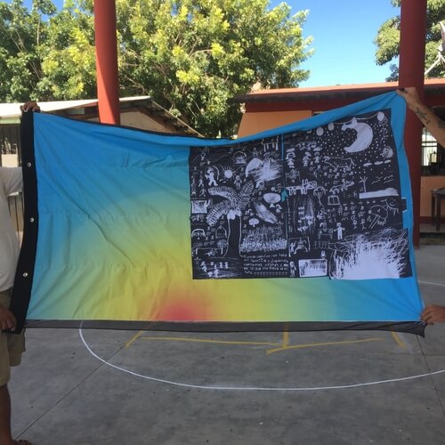 From the understanding that art is capable of generating links between different ideas and concepts to intertwine new ecologies of knowledge, Bandera en Movimiento will use the pole, the flag, and the amalgamation of these elements, as a space with the capacity to stimulate and promote an alternative notion of identity and that stimulates through a process of collective imagination. The project will be approached through collective workshop in which the students of the school contribute with drawings and thoughts to design and produce a representative flag of the school community.