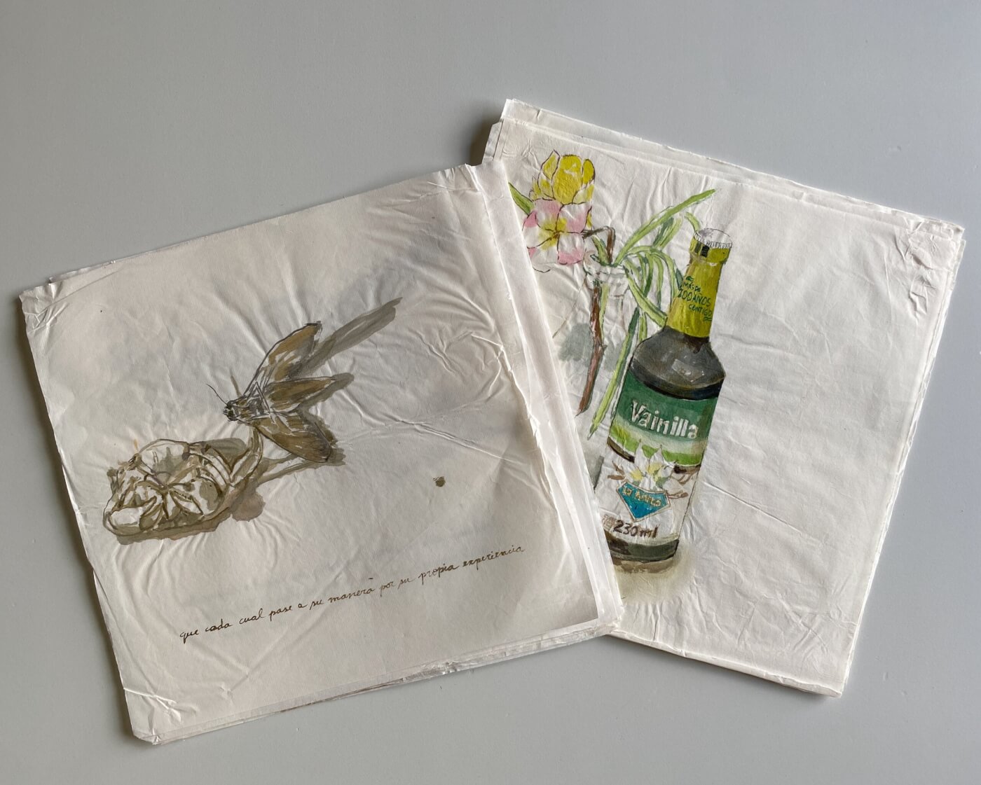 Sin Título (2019) Seis cuadernos en caja de cartón, pintados con tintes naturales.