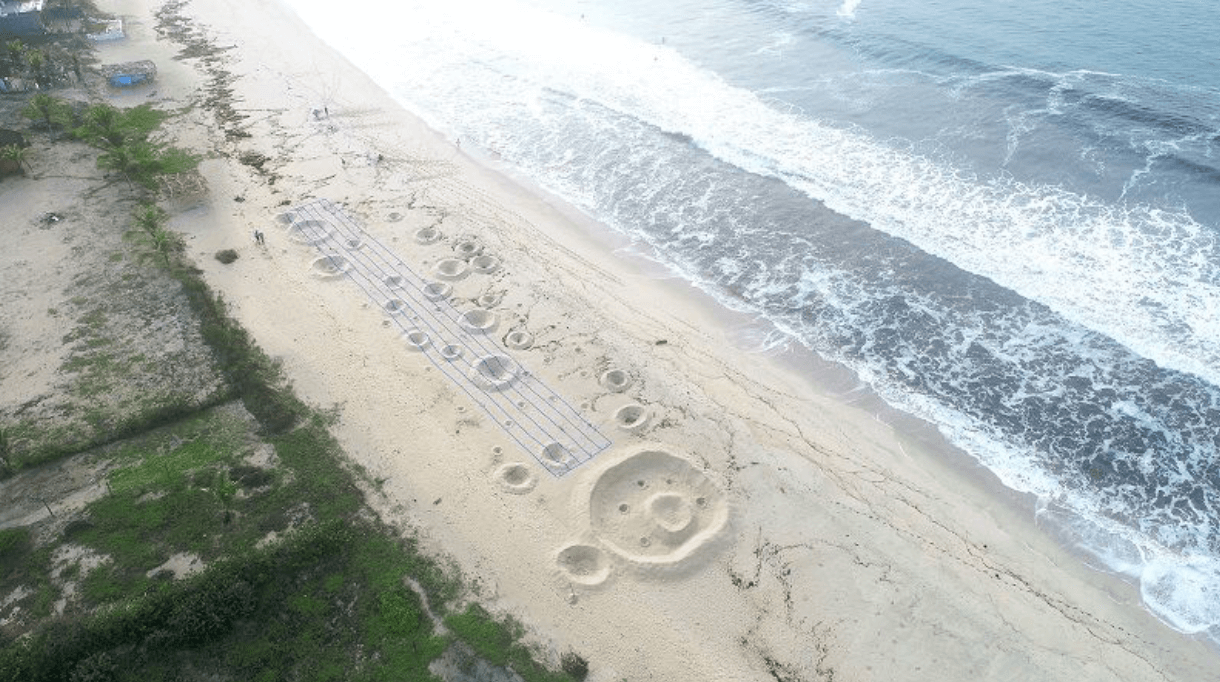The project consisted of creating a race track with a distance of 50 m, in which there were different craters to simulate a race on the Moon. The geographic surface of the Moon and its scale on the beach were studied with the community, creating spatial reports. During the process, students were able to perceive the arena differently; as a material that allows shaping a dream projection, but that once dried, recovers its natural form as a kind material, with which you could spend an afternoon. This project had a significant impact on scale and spatial understanding, and it also resulted as a way to poetically specify the migratory intentions of the terrestrial towards the celestial bodies.