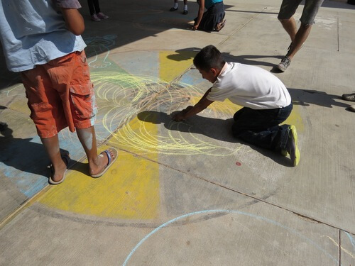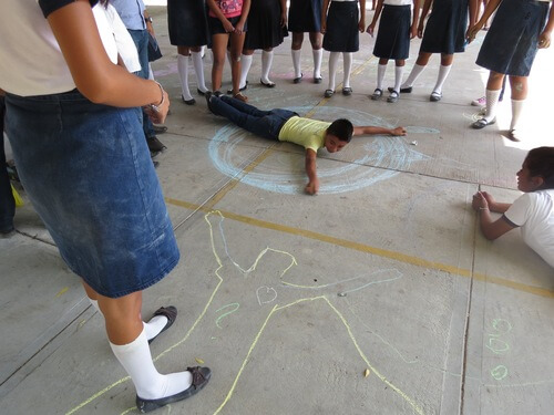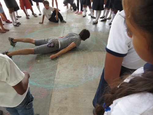 The artist Tony Orrico created a drawing workshop with the girls and boys of the primary and secondary schools of the community of Hidalgo. In the workshop entitled Limits, resources and drawing, they worked with the relationship between the body, the environment, and the drawing. Through body exercises, the girls and boys developed large-format drawings, using their own body as a limit and reference measure for the shapes created. Thus, recognizing the human body itself as a measure, and limit, within the natural environment may be a useful tool for developing any daily activity, even in future occupations.