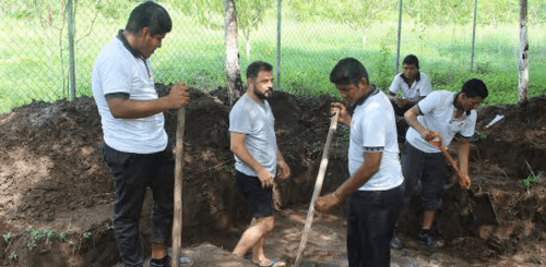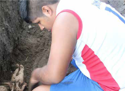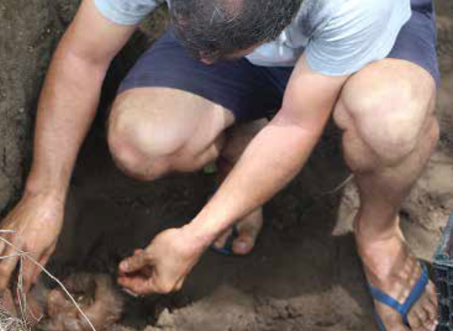 In the first session, the participants were asked to write three writings about historical, cultural or personal events that were important to them or that they believed had a national or international impact. Pieces were made in clay that represented each of the stories collected to be able to install them inside the excavation. The following sessions were devoted to shaping the archaeological excavation, digging, and shaping a space that resembled ruins or a building damaged by the passage of time. The clay sculptures were integrated into the excavation as if they were in the process of being discovered, covering them with earth and mud to incorporate them into the archaeological space. An acrylic plate with a concrete base explains the project and serves as a starting point to access the site.