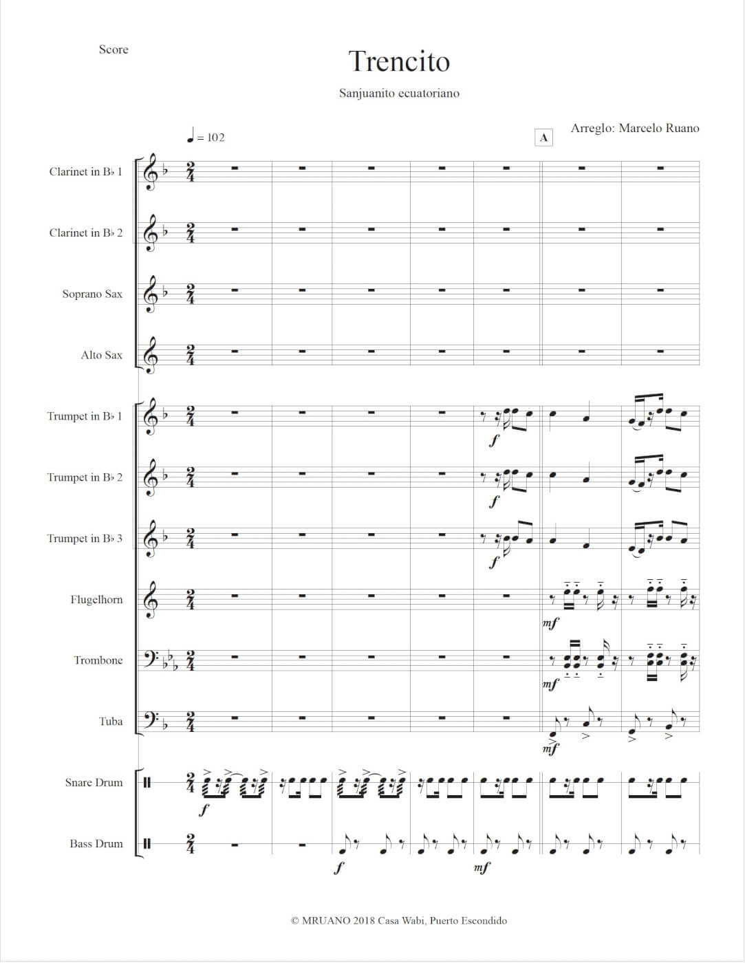 El proyecto cobró una maravillosa segunda vida cuando Mur, Rico y su compañero residente, el compositor ecuatoriano Marcelo Ruano, se dieron cuenta de que podían combinar sus proyectos en algo emocionantemente multidisciplinario. Ruano llegó a Casa Wabi bajo los auspicios de la organización de educación musical Iberoquestas Juveniles para trabajar con Piedra del Pacífico, una banda local, para desarrollar nuevas canciones sin derechos de autor para su repertorio. Durante once sesiones de ensayo, Ruano realizó ejercicios de improvisación, composición, exploraciones sonoras y creación de ambientes sonoros para películas o historias con los miembros de la banda. (También trabajó con maestros de música en San Pedro Mixtepec para expandir su pedagogía). Piedra del Pacífico interpretó varias canciones nuevas, incluyendo «Mix-Tepec» y «Trencito» en Casa Wabi y se combinó en una actuación conjunta con el grupo de danza folklórica de la Casa de la Cultura de Río Grande, interpretando una nueva coreografía basada en una tercera canción nueva, «Viva San Pedro Mixtepec.»