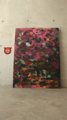 Sin Título (2018) Pintura vinílica sobre lienzo, máscara de papel. 131 x 97 cm