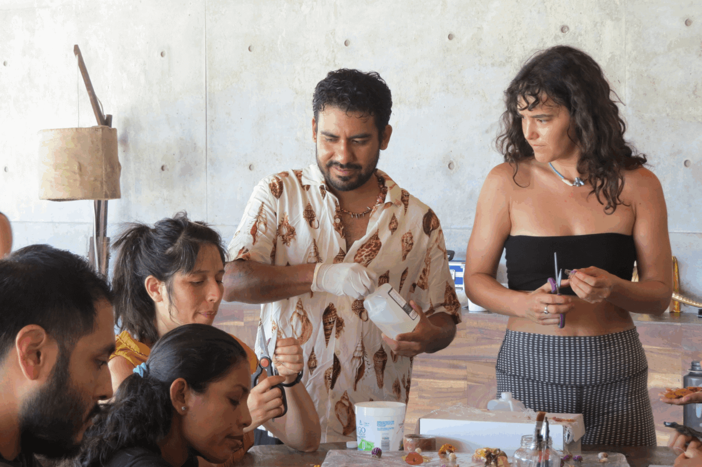 Su conocimiento de las diversas artesanías textiles se inspira y refuerza gracias a su madre, quien era costurera. Su producción también incluye técnicas de soldadura y el uso de metales, prácticas tomadas del oficio de herrero al que se dedica su padre. Hernández utiliza su arte como un medio para repensar su rol como hombre (queer) en la sociedad. Sus procesos parten de una idea central y, de manera inconsciente, estas ideas se van matizando y transformando junto con la formalidad de la pieza para generar objetos escultóricos con formas orgánicas extraídas de la naturaleza.