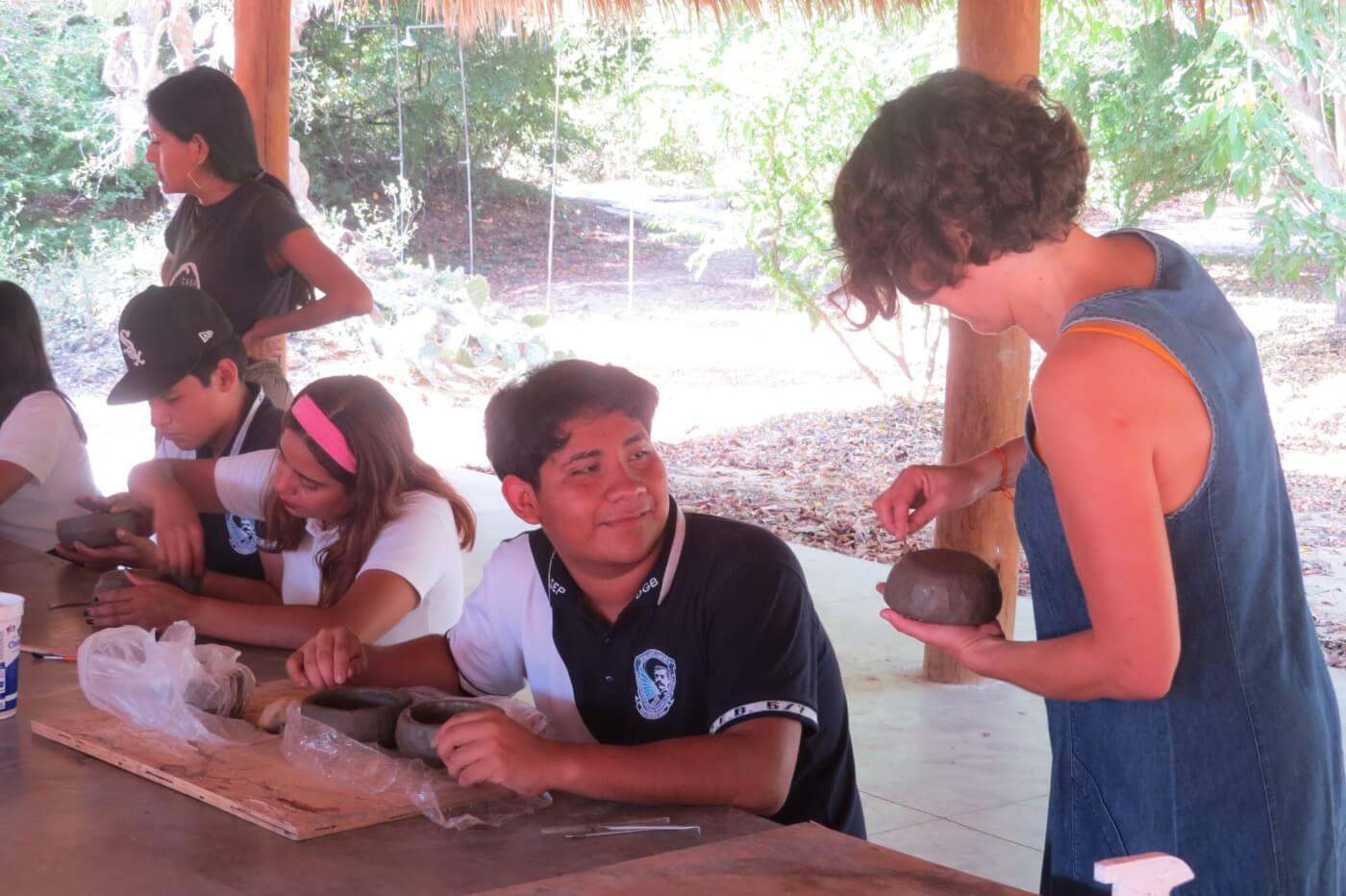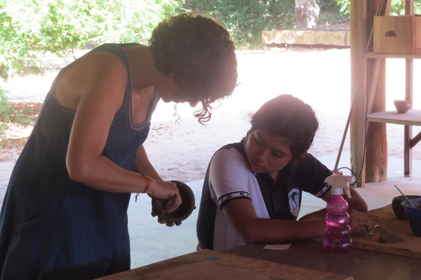 Utilizando el barro local, se realizó un taller de confección de vasijas sonoras, inspiradas en las realizadas en diferentes lugares de Sudamérica. La intención del proyecto “La forma al sonido, como el agua a la tierra”, además de sensibilizar a los participantes por medio del uso de la arcilla local, fue generar experiencias lúdicas colectivas y tomar elementos de identidad cultural y biológica de la región para trasladarlos como elementos constitutivos de las vasijas.