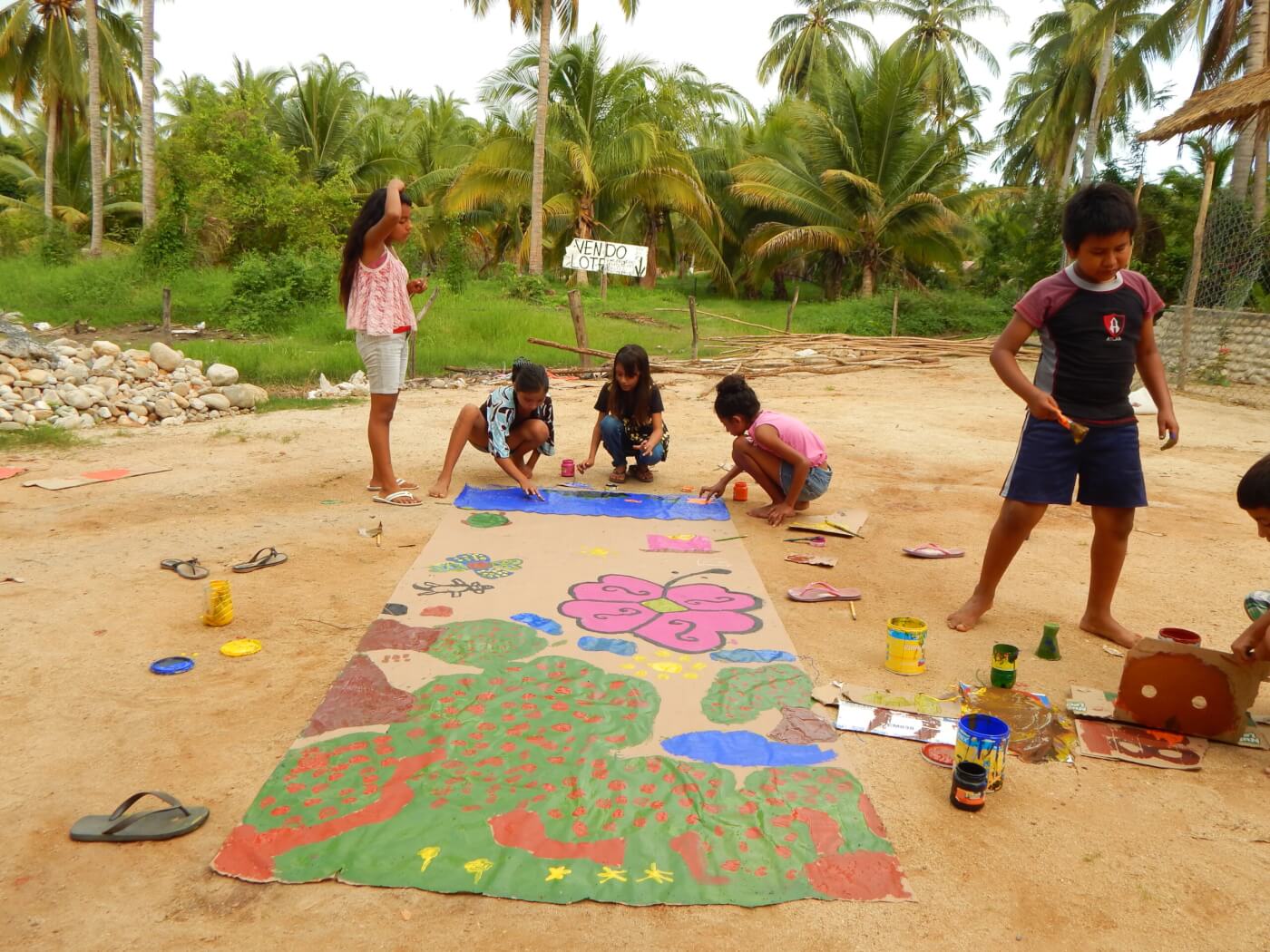 Este taller estuvo formado por 5 sesiones de aproximadamente 2:30 hrs. c/u. Se llevó a cabo en el poblado de Cacalotepec, aproximadamente a 45 min de Puerto Escondido con rumbo a Pinotepa Nacional. Los participantes fueron niños desde los 8 años hasta una adolescente de 17 años, en su mayoría hijos de miembros de la Cooperativa de producción y servicios eco-turísticos Playa del Cacalote.