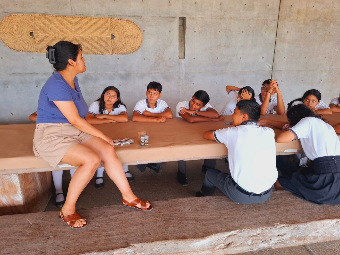 Trinares de coloridas aves fue un proyecto comunitario en dos partes. Por un lado se desarrolló un taller de reconocimiento de aves y sesiones de dibujo con alumnos de bachillerato del COBAO de Río Grande, se invitó a los jóvenes a reflexionar acerca de las aves de la región, así como la importancia dentro del ecosistema en la costa de Oaxaca. Mediante varias sesiones de dibujo y derivas dentro de los jardines de Casa Wabi, se invitó a los adolescentes a participar en visitar los jardines de la Casa con la expectativa de tener sesiones de avistamiento de aves en compañía de dos profesionales en la materia, así como a traducir gráficamente las percepciones que dejaban los recorridos durante la mañana de cada sesión.