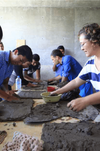 Después de una primera sesión en la cual se expuso la visión general de las obras del artista, los participantes estuvieron dispuestos a tener un enfoque creativo, estando invitados a intercambiar ideas, impresiones y experiencias, discutiendo entre sí y con el propio artista. Los entornos Casa Wabi están ocupadas por diversos tipos de interacciones y experimentos permitiendo que el taller fluyera como era esperado. Se les invitó a participar en dos proyectos que el artista había realizado previamente, el primero con el uso de la voz; el eco en la arquitectura de la sala de exhibiciones y el observatorio de Casa Wabi. Permitiéndoles a los alumnos a explorar el transcurso y la resonancia del sonido dentro de un espacio.