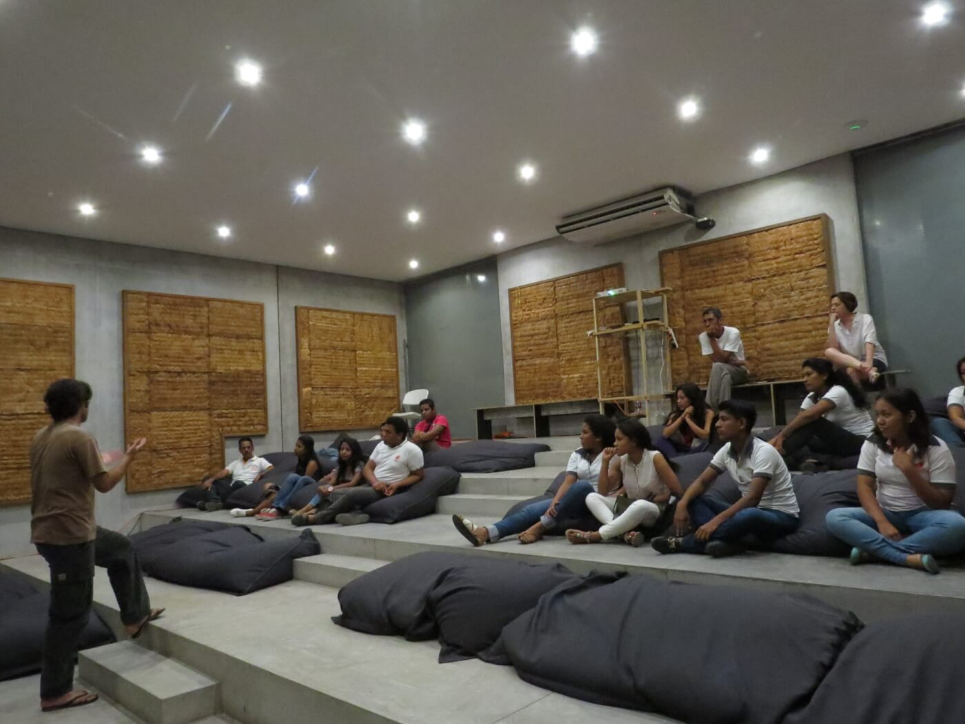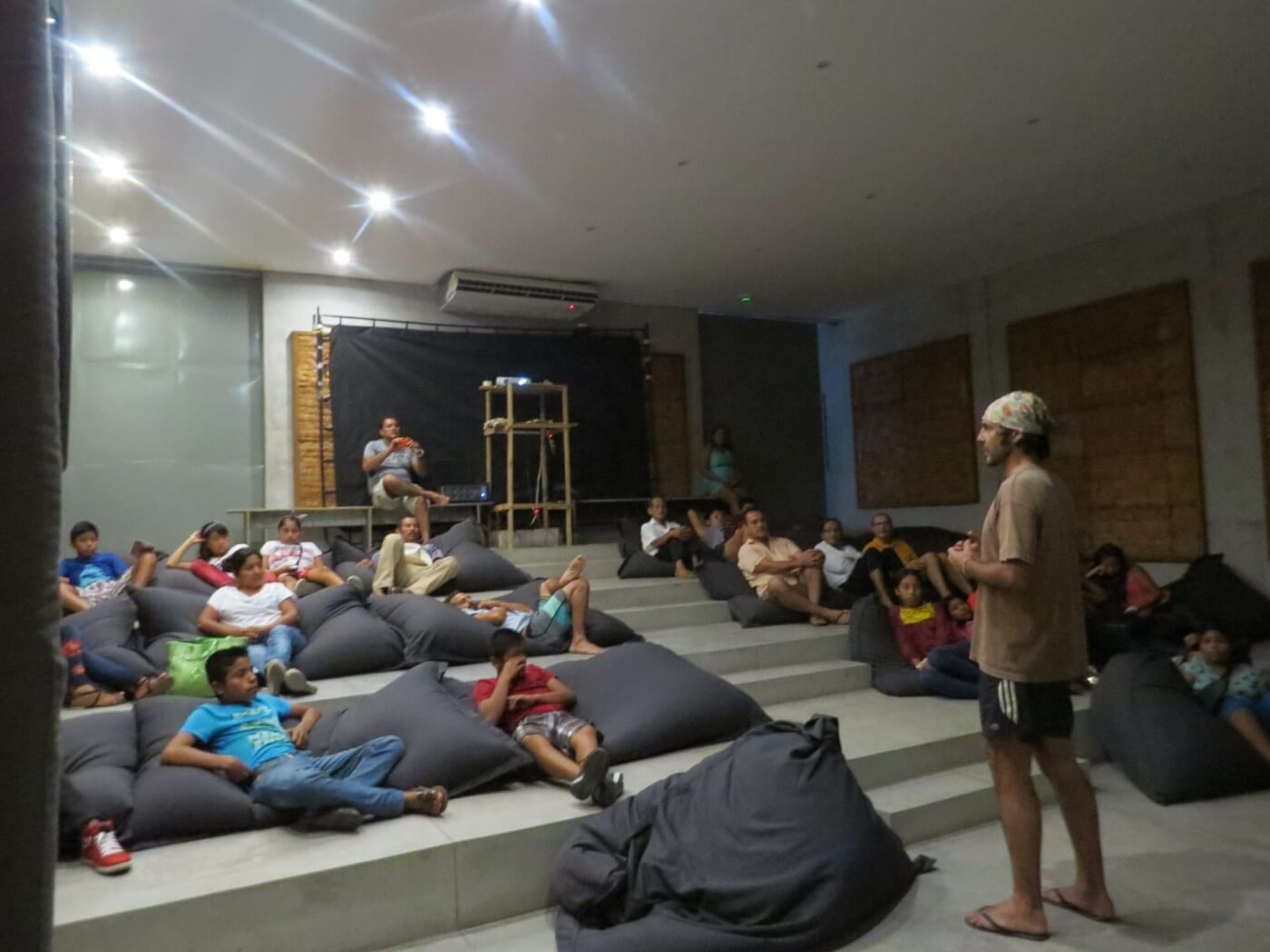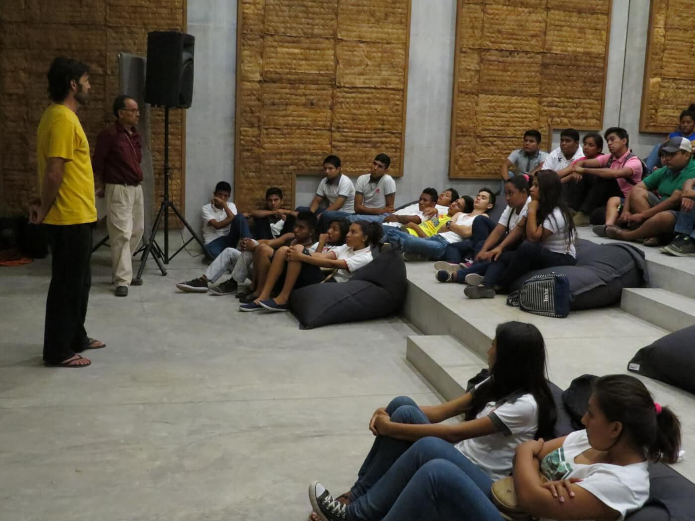 Proyecciones de la película “La Jaula de Oro” – Comunidades de “Río Grande El Venado Agua Zarca Cacalotepec San José Manialtepec El cineasta mexico-español Diego Quemada-Diez, realizó ocho proyecciones de su película La Jaula de Oro en las instalaciones de Fundación Casa Wabi. El largometraje aborda una temática sensible para las comunidades oaxaqueñas: la migración de seres queridos hacia los Estados Unidos. Habitantes de San José Manialtepec, Hidalgo, Cacalotepec, San Isidro Llano Grande y Agua Zarca fueron invitados a las funciones de La Jaula de Oro, donde al finalizar la película se realiza un intercambio de ideas, impresiones y experiencias personales del público con el cineasta. Con estas proyecciones y debates, se abrió un diálogo de retroalimentación sincera entre el director y la vivencia directa de los miembros de las comunidades.