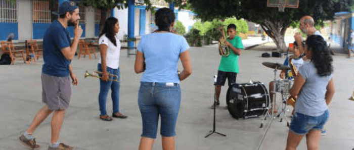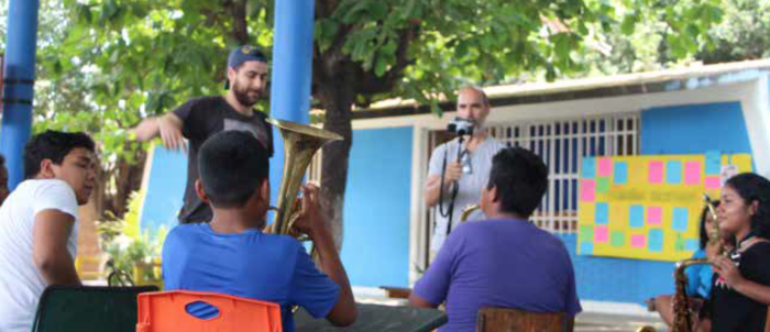 Se le invitó a jugar con su instrumento, sacarle nuevos sonidos y a animarse a improvisar y construir nuevas estructuras musicales. Una de las sesiones se realizó dentro de Casa Wabi, donde los participantes fueron vendados de los ojos para que tomaran el recorrido de la casa, haciendo paradas en puntos estratégicos donde la acústica juega un papel importante y así poder describir con signos gráficos los sonidos que se les puso a escuchar, esos símbolos fueron utilizados en la partitura de la composición del residente para mostrarles cómo pueden crear una nueva notación musical a partir de nuevos sonidos.