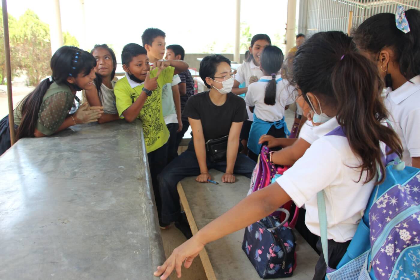 Suspiros, realizado con niños de la escuela Melchor Ocampo de la comunidad de El Zapotalito, es una puesta en escena en la laguna, con una isla hecha de ocarinas que los mismos alumnos fabricaron para realizar un llamado a la laguna y conectar con su entorno. Las flautas, que se hicieron con moldes de papaya, flotaron juntas en la laguna emitiendo sus sonidos, mientras en una embarcación, los niños participantes se acercaron, haciendo sonar las suyas. Las sesiones incluyeron ejercicios de sensibilización sobre la percepción de los sonidos y de las diferentes y variadas posibilidades de registrarlos y reinterpretarlos. La experiencia fue registrada en video y se editó una versión final que fue entregada a la comunidad escolar y forma parte del acervo de Casa Wabi.