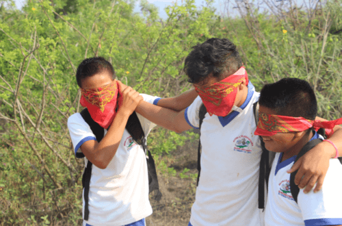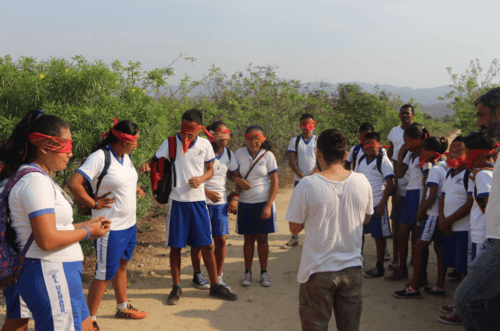 La primer etapa se llevó a cabo en las instalaciones de Casa Wabi donde los participantes tomaron el recorrido de la casa con ojos vendados, se les pidió que agudizaran sus otros sentidos para “captar” el espacio de la residencia y que pudieran dibujar lo que sintieron, también con los ojos tapados. Una vez terminado el ejercicio se volvió a hacer el recorrido pero con la vista descubierta y poder contrapuntear las dos experiencias. La sesión se terminó con un ejercicios de dibujo y autoretratos. Las siguientes sesiones se llevaron a cabo en las instalaciones de la secundaria, se trabajaron ejercicios de imaginación y percepción del entorno, con ojos vendados y con discusiones sobre cómo se deben cuestionar constantemente el mundo que los rodea.