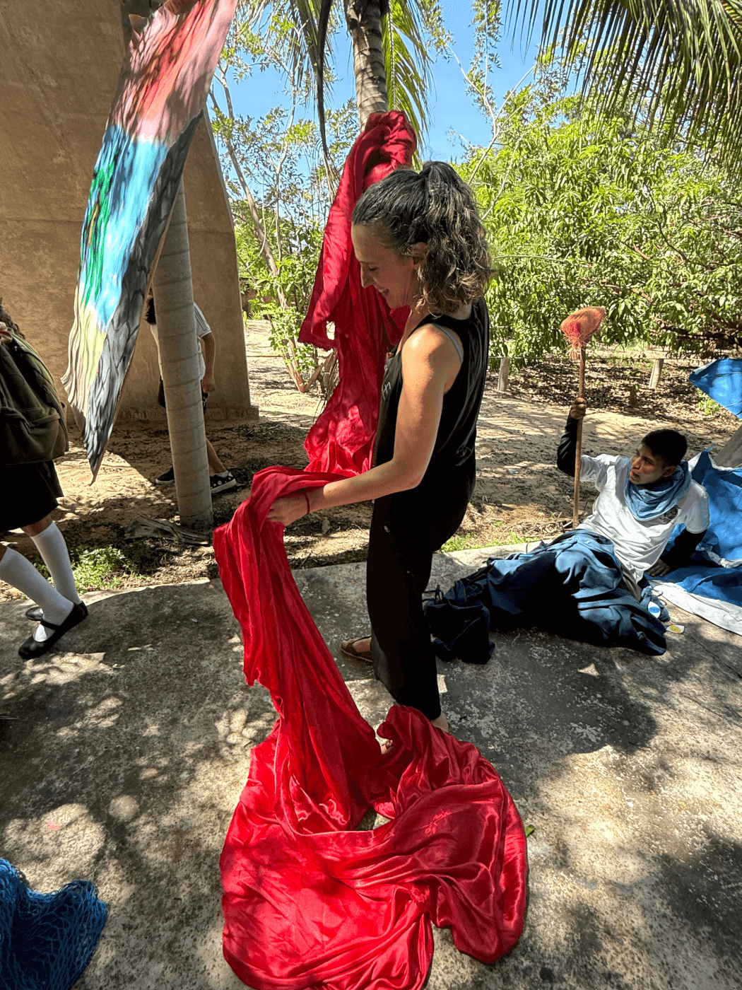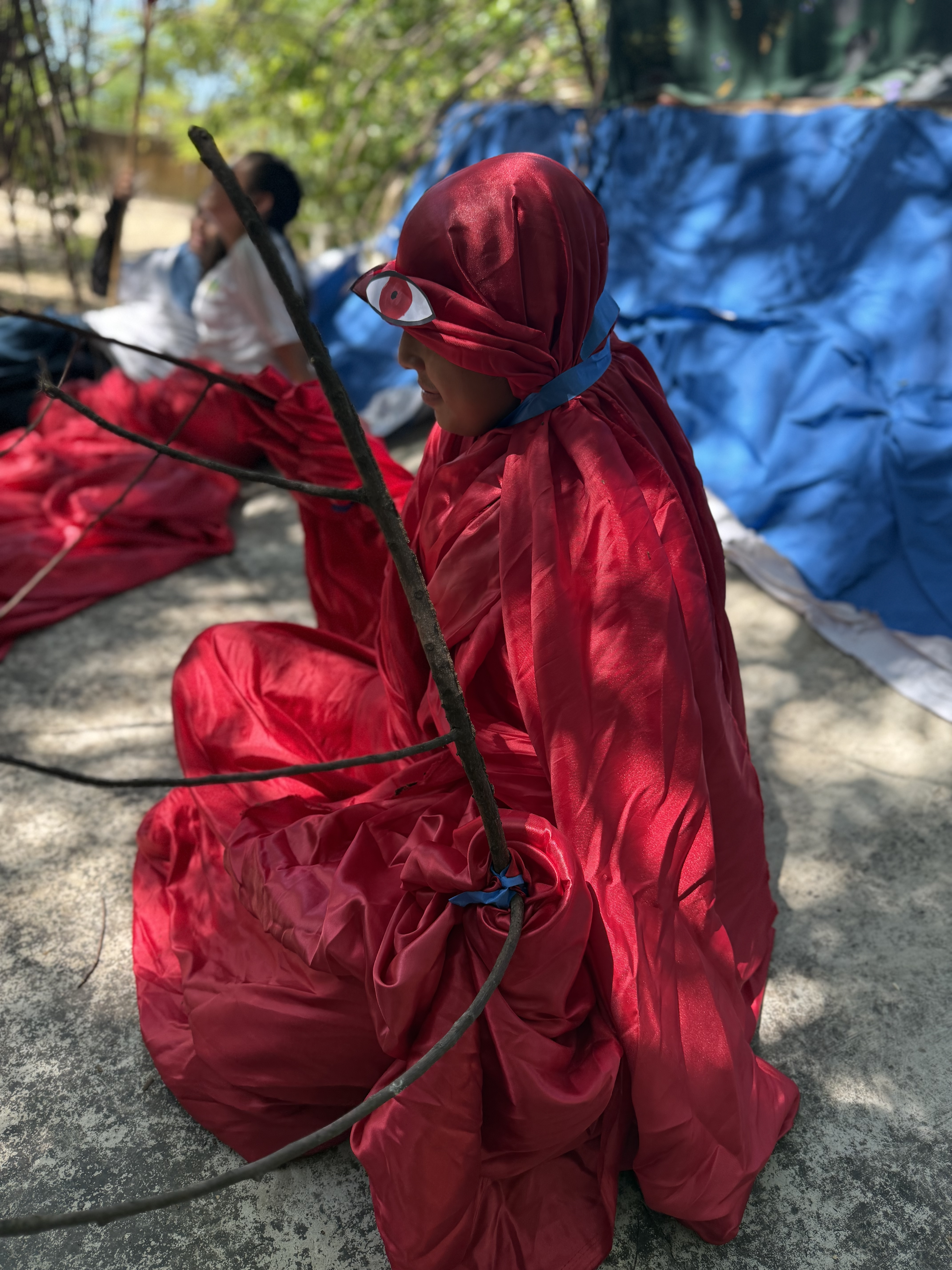 Los objetivos del proyecto fueron realizar una creación colectiva a través de la pintura con dispositivos propios del teatro y la escenografía que permitieran explorar distintas relaciones entre la pintura, la arquitectura y el cuerpo. En “El teatro de la pintura” se exploró el espacio desde la pintura, dirigiendo la atención al recorrido del propio cuerpo en el espacio, creando nuevas relaciones espacio-temporales.