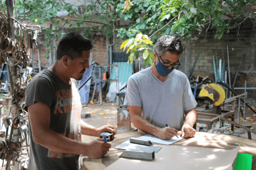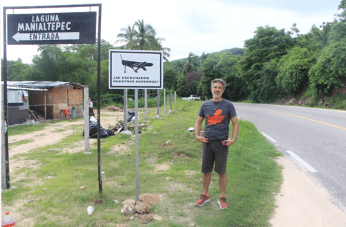 Este es un proyecto híbrido, que combina elementos pictóricos, escultóricos y sonoros y se encuentra instalado en el embarcadero de la cooperativa de prestadores de servicios turísticos “La Isla del Gallo” de la comunidad Aguaje el Zapote. Se crearon señales de tránsito para ser instaladas a pie de carretera y encaminar a los turistas hacia el embarcadero de la laguna de Manialtepec. Estas señales tienen representaciones de animales típicos del manglar y vienen con un código QR que al escanearlo te muestra sonidos de la laguna, de las aves, narraciones o mitos de esta comunidad o sonidos de niños imitando el canto de las aves o el sonido de alguno de estos animales. El contenido de estas grabaciones va cambiando con el paso del tiempo, pues se invita a los turistas de la laguna a mandar sus propias grabaciones y ser parte de este proyecto y de esta forma es un proyecto siempre cambiante.