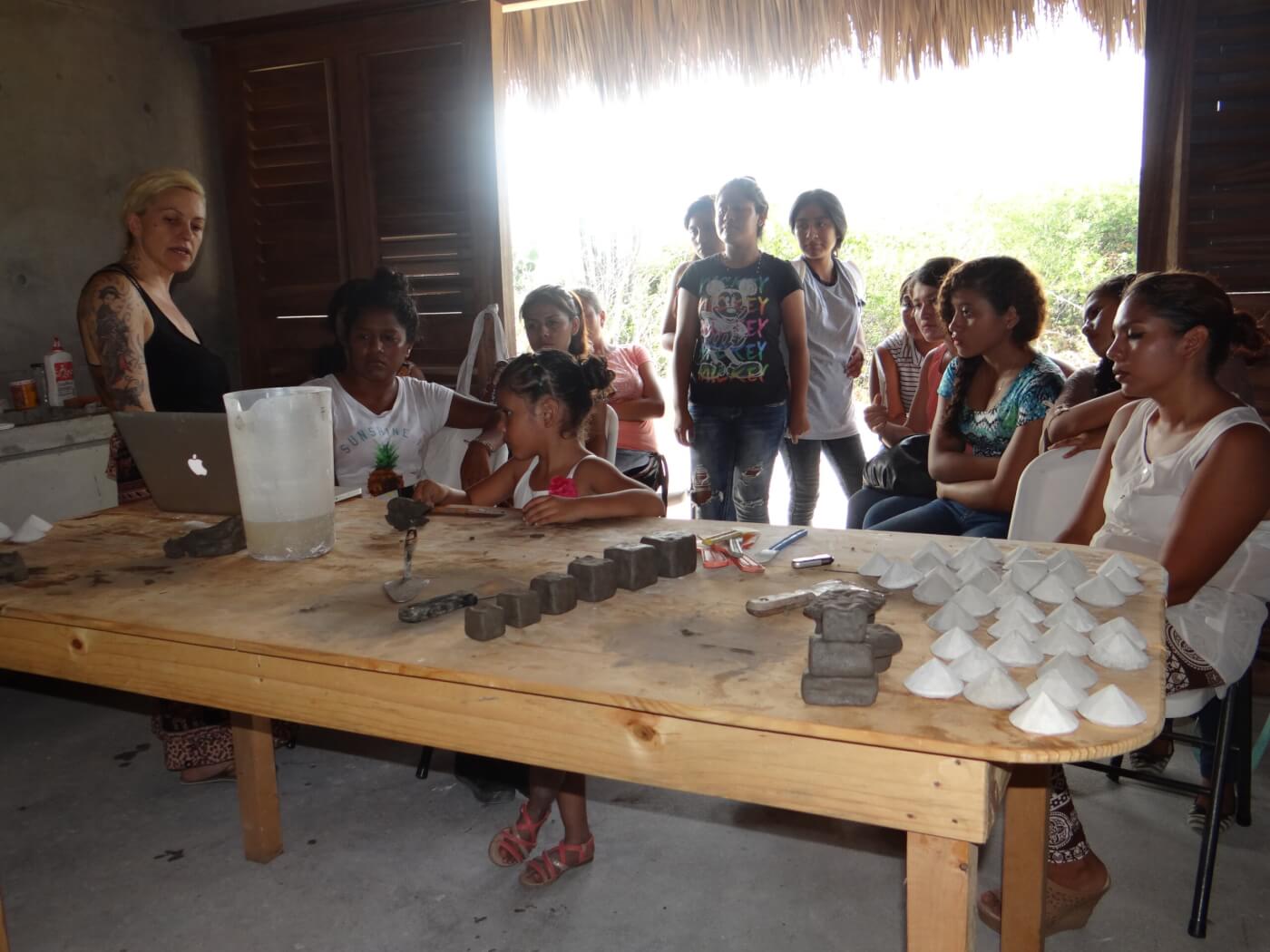 Realizó un taller con alumnas del COBAO de Río Grande, consistió en la elaboración de piezas de cemento y barro, con forma de diamante. Durante las sesiones de construcción, Bragado dio una introducción a la obra de artistas mujeres modernas y contemporáneas, auxiliándose de imágenes electrónicas.