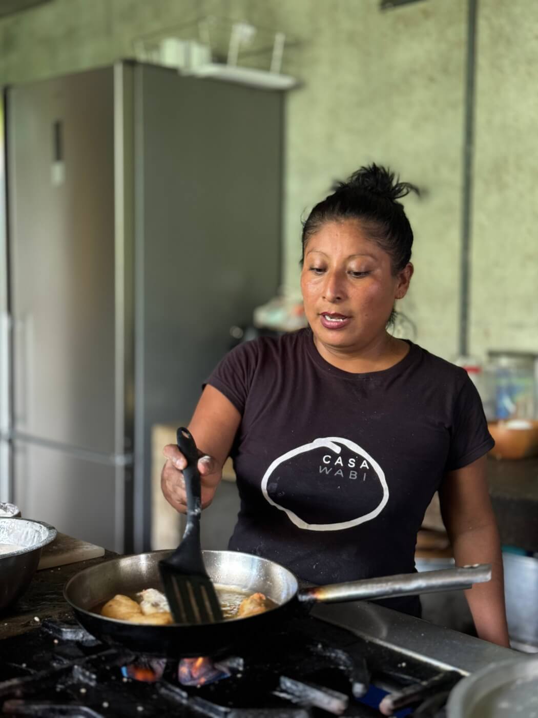La idea principal de su proyecto fue trabajar estrechamente con el equipo de cocina de Fundación Casa Wabi. A través de un intercambio de diálogos y aprendizajes sobre la cocina local, buscaba ayudar en lo que fuera necesario, desde acompañarlas a comprar los alimentos, preparar los platillos, hasta servirlos, lavar los ingredientes y presentarlos en la mesa. Su enfoque estuvo siempre en apoyar de cualquier manera que Emi, la chef principal, necesitara.