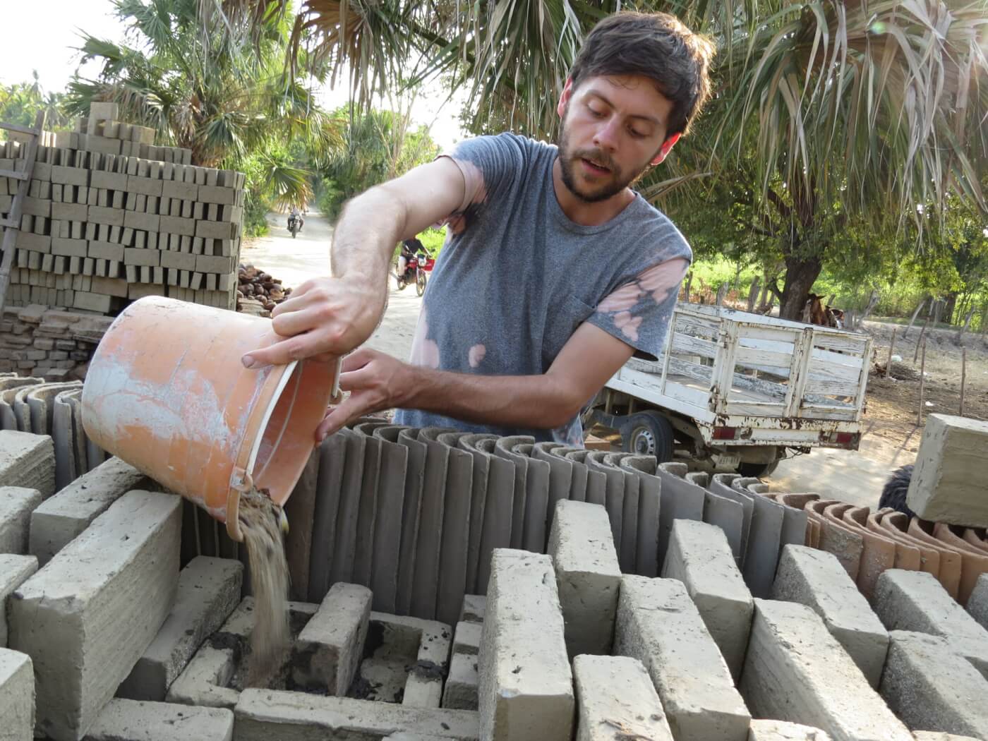 El joven artista francés, trabajó con artesanos de barro de la comunidad de Agua Zarca. Su proyecto consistió en experimentar con distintas temperaturas del horno de artesanal de Fundación Casa Wabi. Este horno usa como combustible, fibra seca de coco. Paul Lahana utilizó vidrio molido de botellas recicladas, ladrillos y arcillas locales.