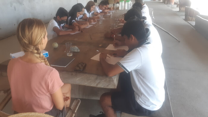 Su proyecto consistió en la impartición de un taller llamado Community Consciousness, donde adolescentes de comunidades aledañas lograron conectar con la apreciación artística a partir de ejercicios guiados de meditación y de instalación con elementos naturales de la zona. Con la intención de reforzar la conciencia de que el humano es parte de la naturaleza, se hizo una exploración de elementos naturales que llamaran la atención. Con la participación de todos los involucrados se hizo una instalación efímera en la orilla del mar rescatando los conceptos de belleza, impermanencia y haciendo evidente que piezas de arte pueden crearse en cualquier contexto y con cualquier material.