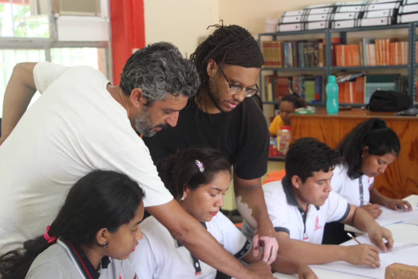 La idea, era enseñar elementos básicos de dibujo, diseño y pensamiento visual, y usar esos ejercicios como base para un mural abstracto.