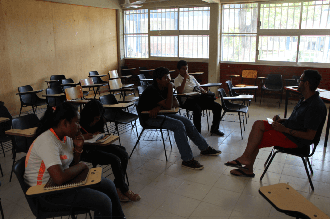 El artista sonoro Rogelio Sosa realizó un taller de improvisación sonora con estudiantes de bachillerato. Previamente se explicó los conceptos básicos, a nivel teórico práctico de tono, compás y métrica.