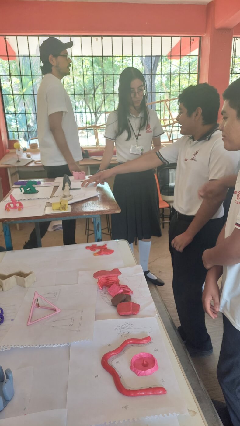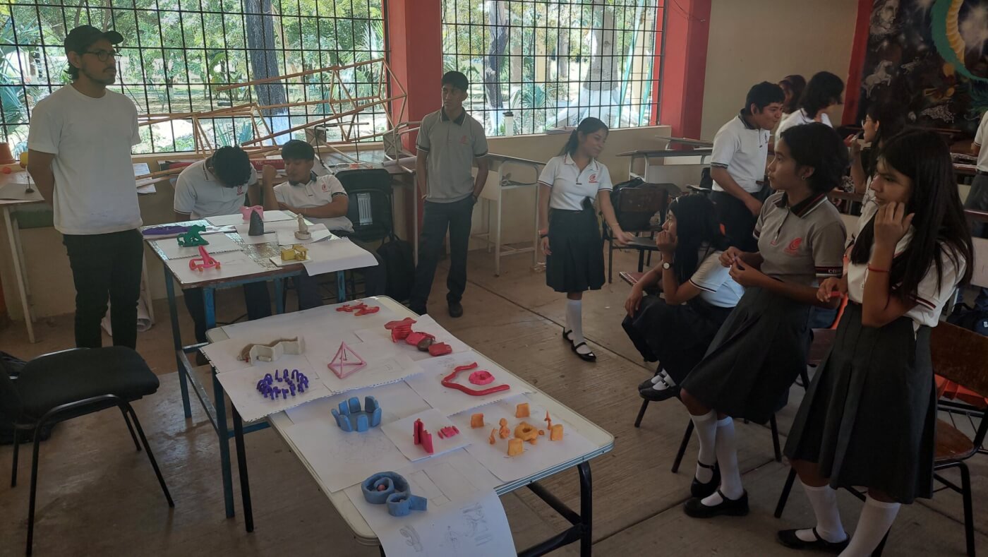 Se realizó una serie de encuentros con estudiantes del Bachillerato de Bajos de Chila, buscando propiciar el dialogo, la reflexión y la exploración plástica sobre el entorno construido. “Espacio común” consistió en desarrollar, diseñar y construir un espacio de encuentro tridimensional respondiendo a las preguntas: ¿cómo nos conectamos con el entorno construido? Y ¿qué forma tiene el encuentro?