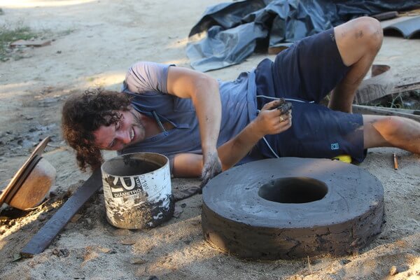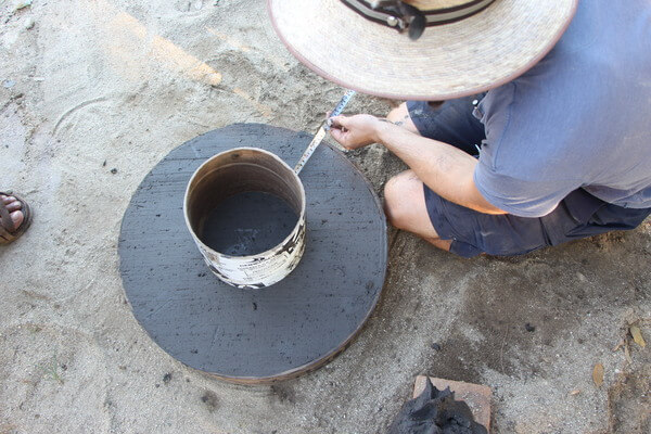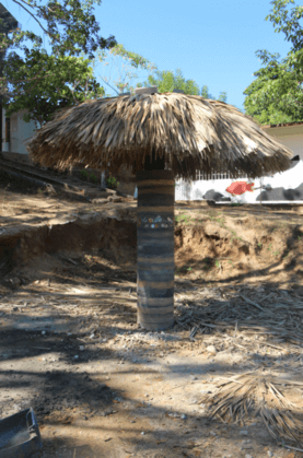 El proyecto tuvo como objetivo crear una escultura hecha con segmentos apilados de concreto de distintos colores que imitan un corte en la profundidad de la tierra y muestran la estratigrafía de las distintas eras geológicas. Al centro de la pieza hay un segmento que está conformado por latas de aluminio; la pieza hace un llamado de atención a las generaciones de alumnos que convivirán con la escultura para hacerlos conscientes de la cantidad de basura que generamos como especie y que dejamos como nuestro legado en la tierra. La escultura se remata con un techo de palma que brinda sombra en el patio de juegos de la escuela e invita a niños y profesores a convivir debajo de ella.