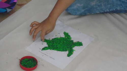 En la primera sesión aprendimos a hacer papel reciclado y en la segunda les enseñé la técnica que se utiliza para hacer papel amate, con hoja de plátano. Después de estas sesiones, fue más fácil interactuar con los del primer año de secundaria, creo que entendieron la técnica del papel artesanal con bastante rapidez y sentí a los dos grupos entusiasmados con la técnica de la serigrafía en casa.