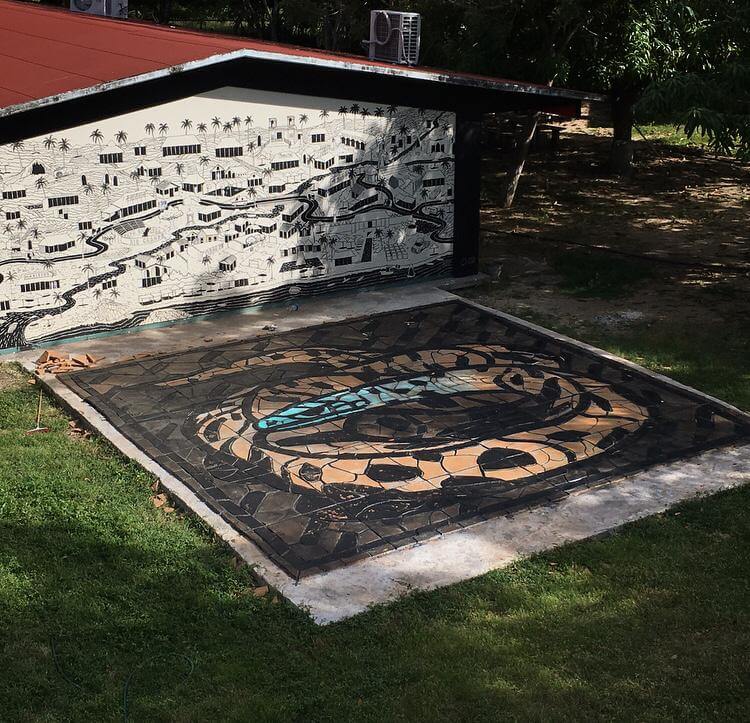 Consiste en un gran piso de mosaico ubicado dentro de las áreas verdes de la institución, para que sirva como punto de encuentro y referencia dentro del plantel. Este mosaico es creado por placas de barro cocido, que en su conjunto forman la imagen de una gran serpiente. Se pretende que este espacio pueda ser utilizado para representaciones teatrales, zona de convivio o de encuentro o aula al aire libre.